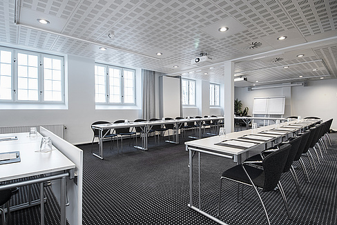Rooms 622 + 623 have a total of 72 square metres and can be divided into two separate spaces. There is room for be up to 88 people in total in different table arrangements.