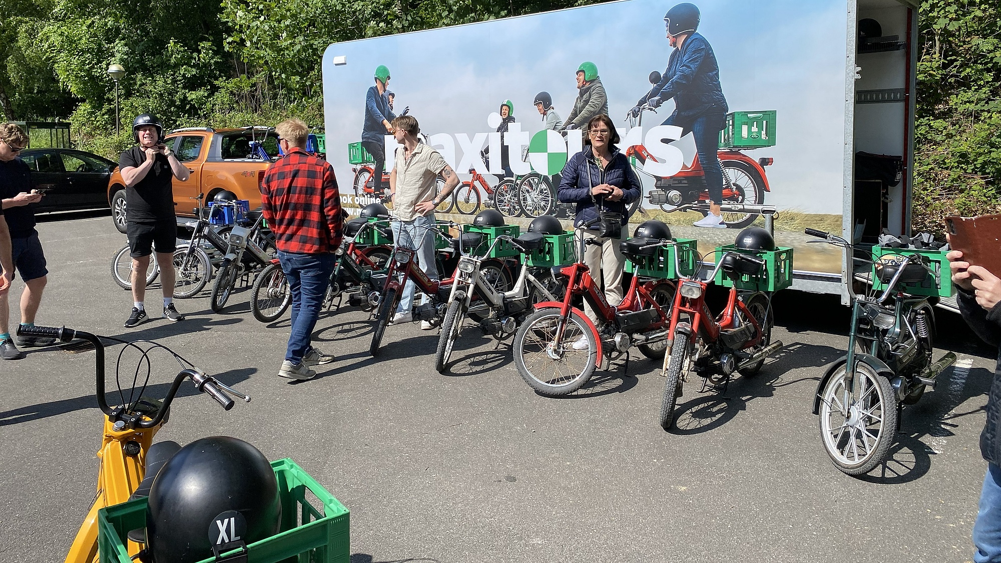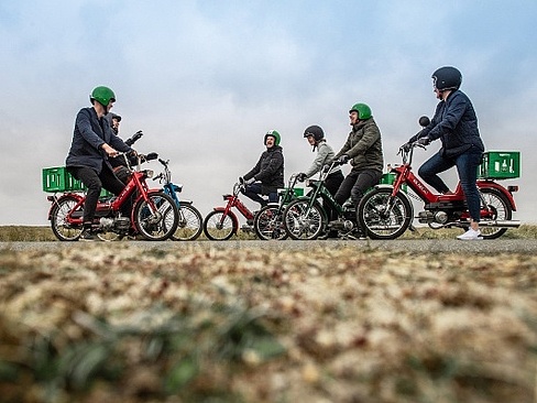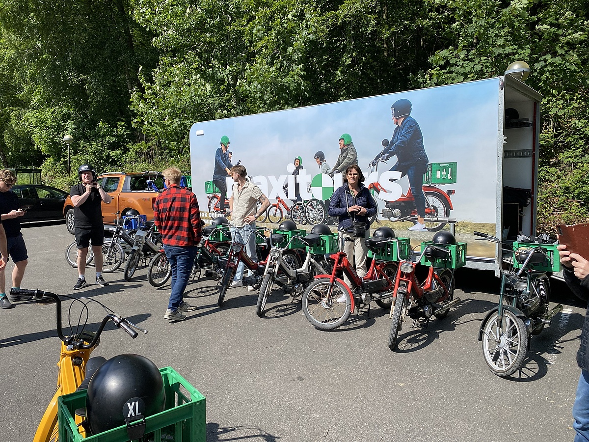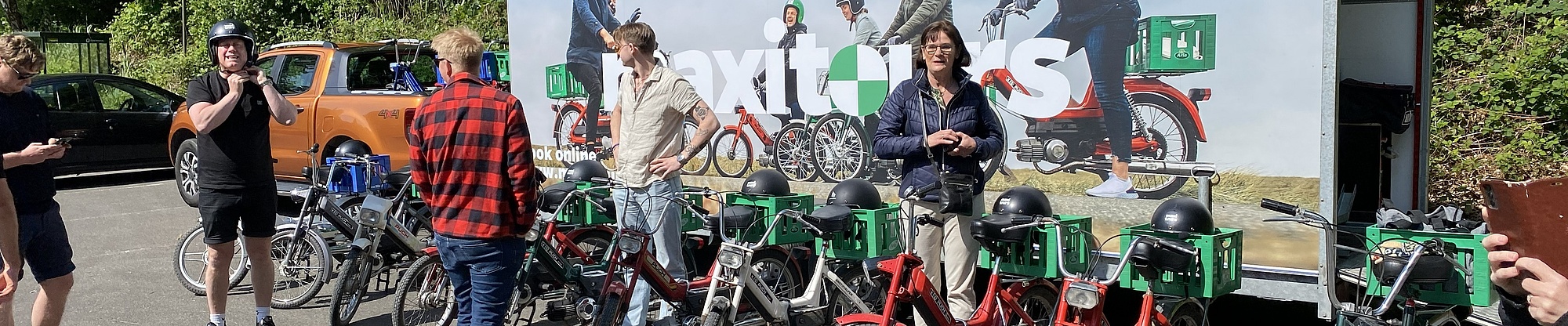De gamle på holdet fortæller røverhistorier om deres egne Puch Maxi-oplevelser i ungdommen. Og de unge elsker retro-følelsen og et unikt billede til Instagram.