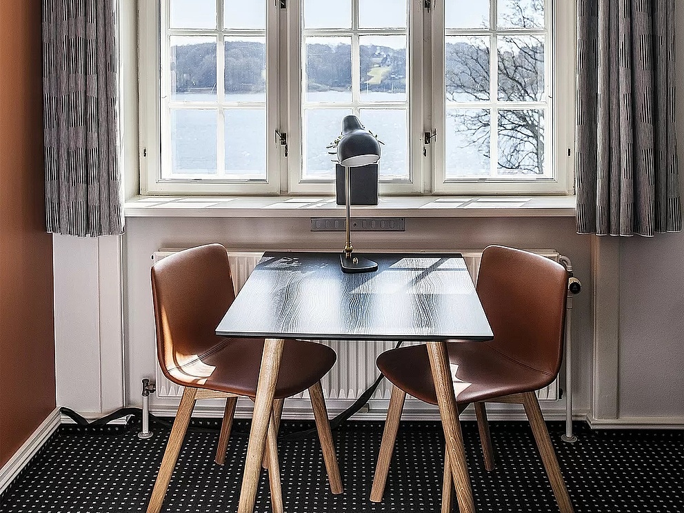 Her er ikke to værelser helt ens - alle vores 152 værelser har sin egen stemning og charme. Du finder værelser med fjordudsigt eller udsigt til fredfyldt skov - med små ovale vinduer eller panoramaudsigt fra gulv til loft.