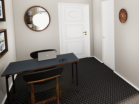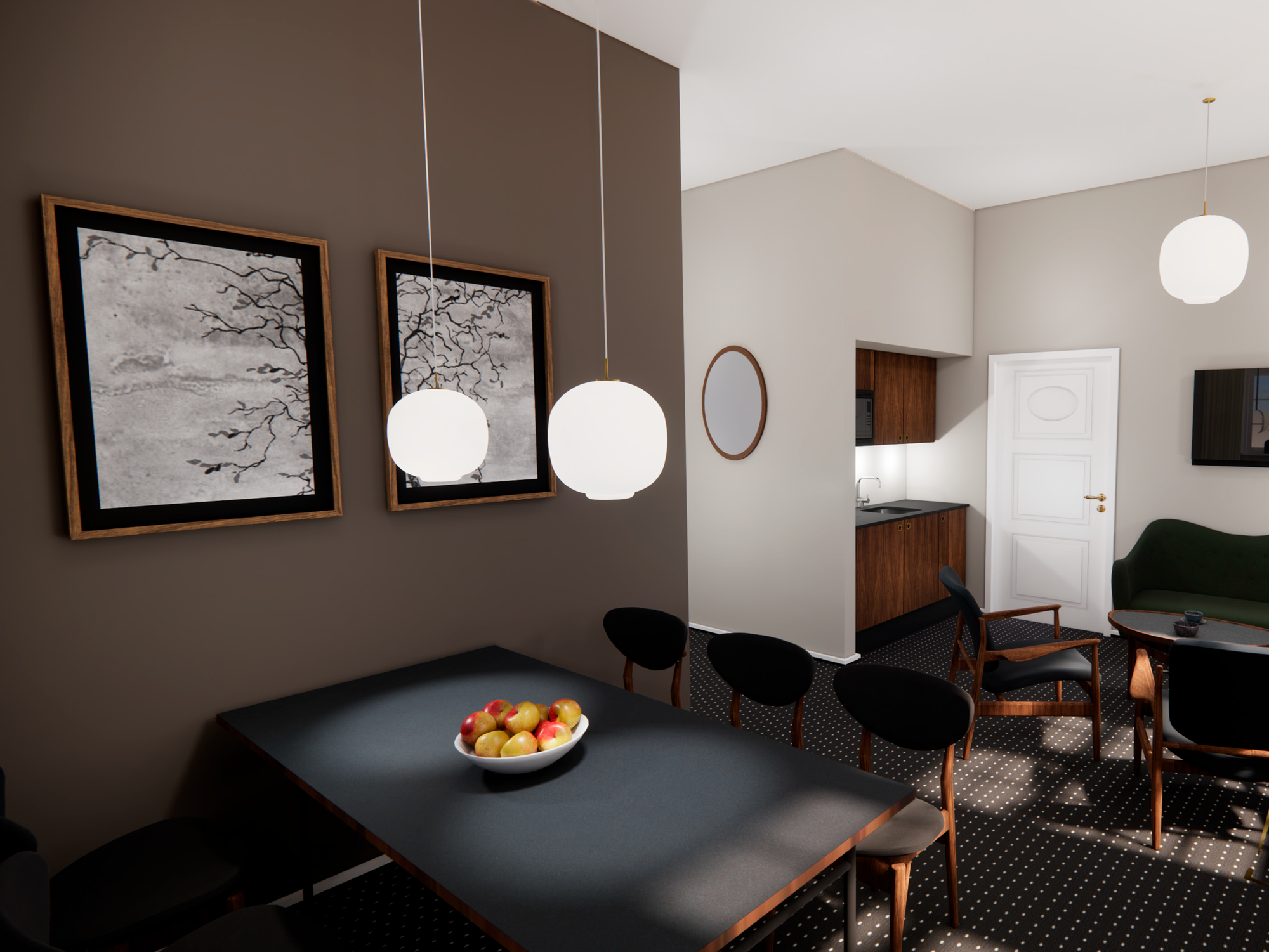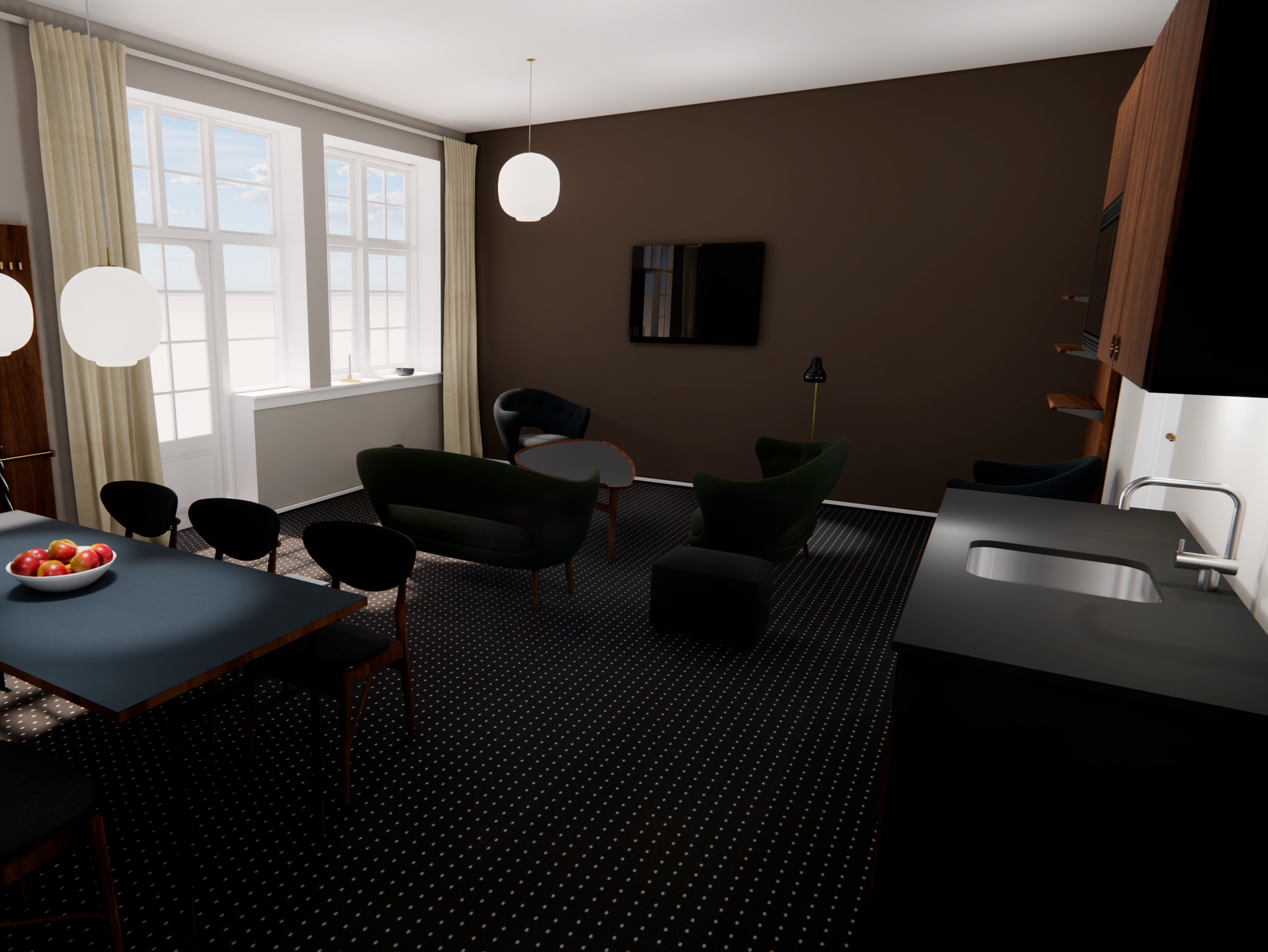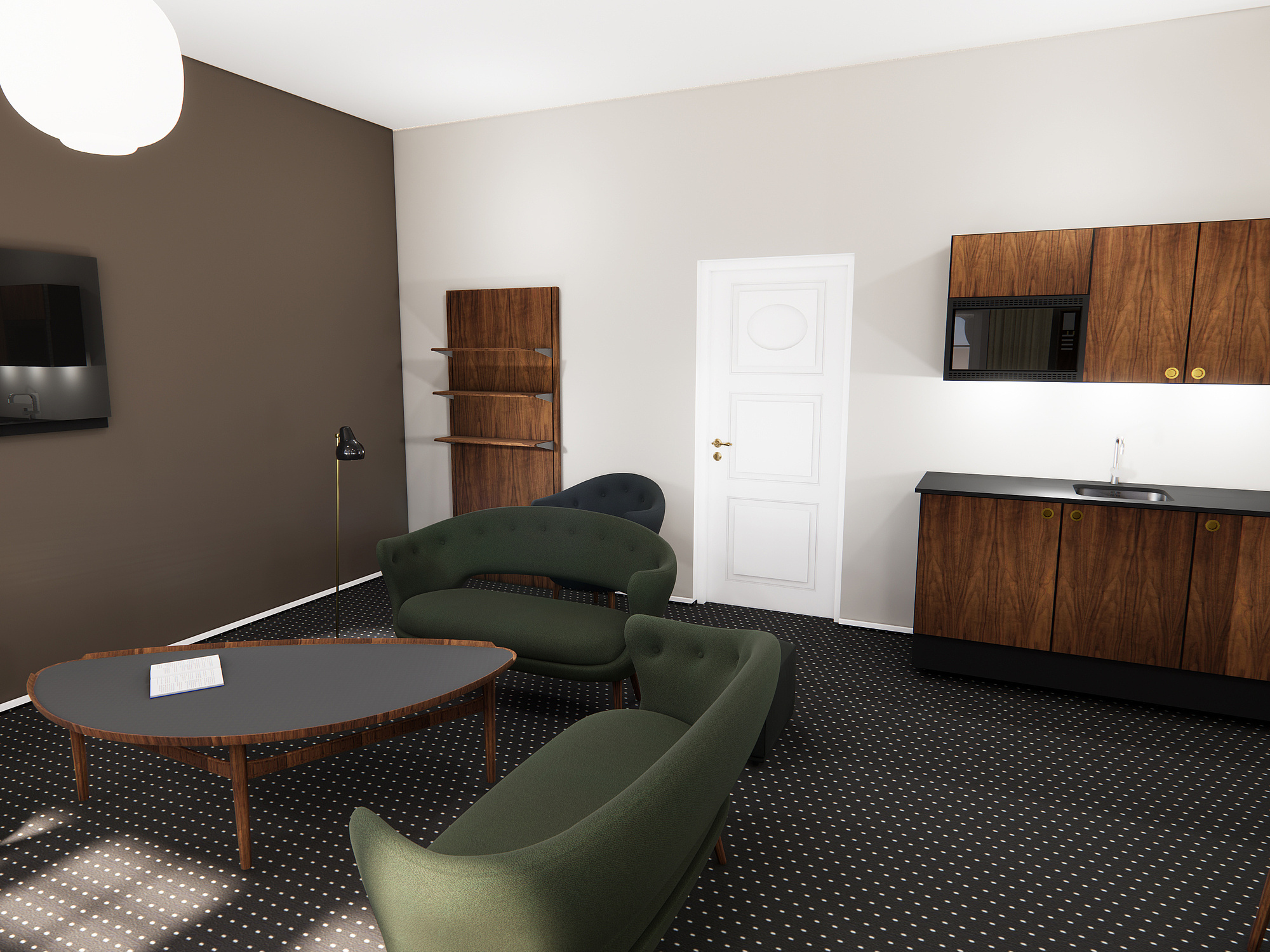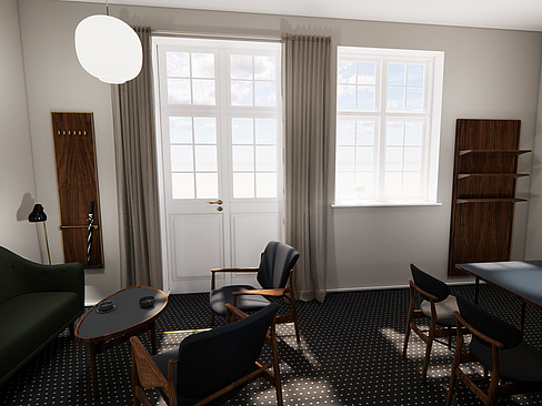 er indrettet med unik dansk møbeldesign skabt af den verdensberømte møbelarkitekt Finn Juhl.